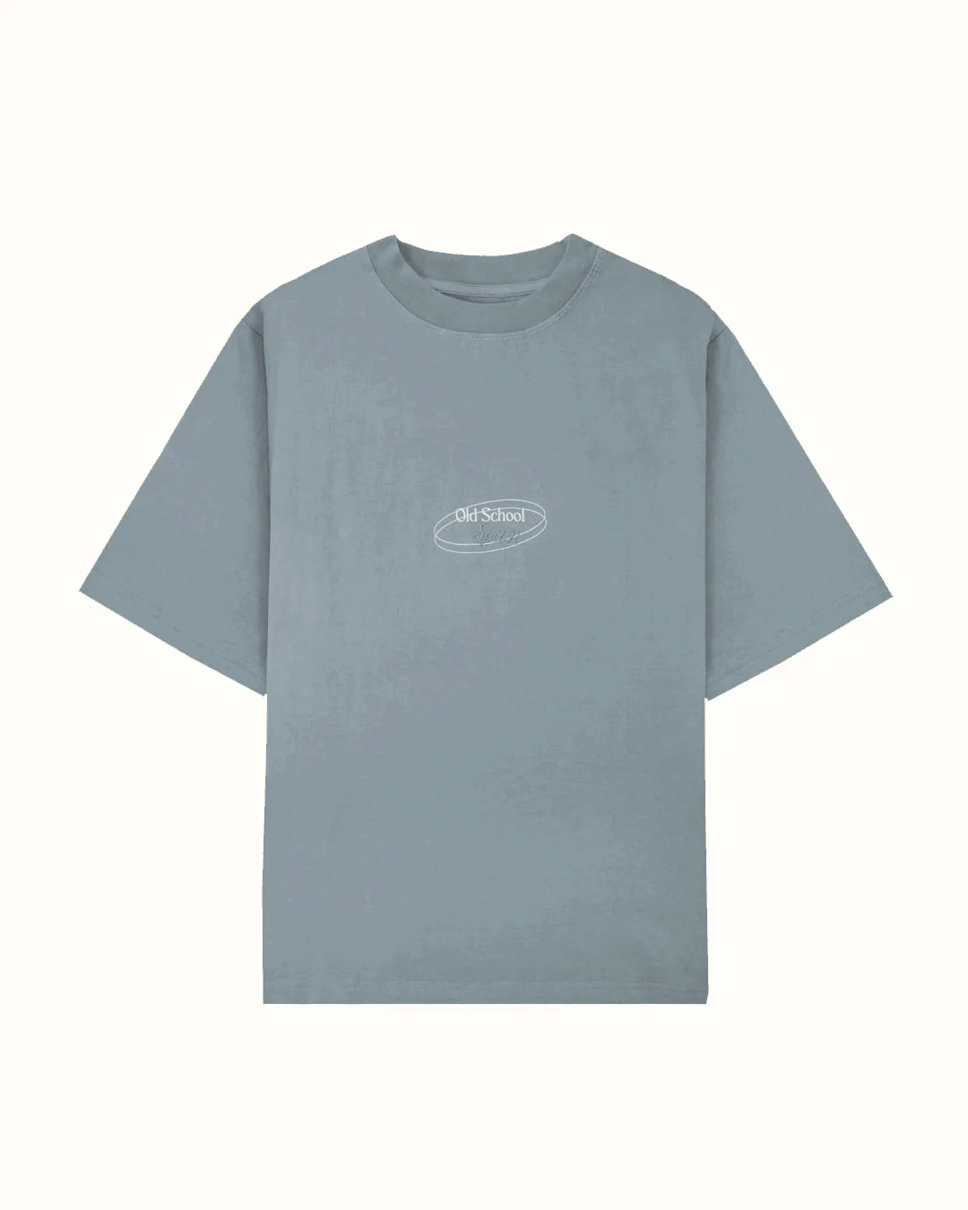 - Camiseta oversize azul/grisácea con efecto desgastado