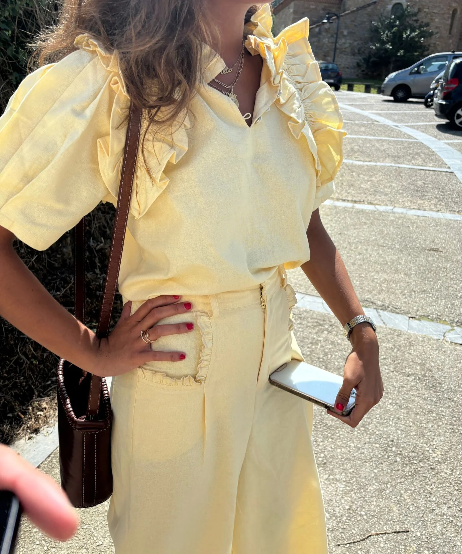 - Camisa confeccionada en hilatura con mezcla de lino.